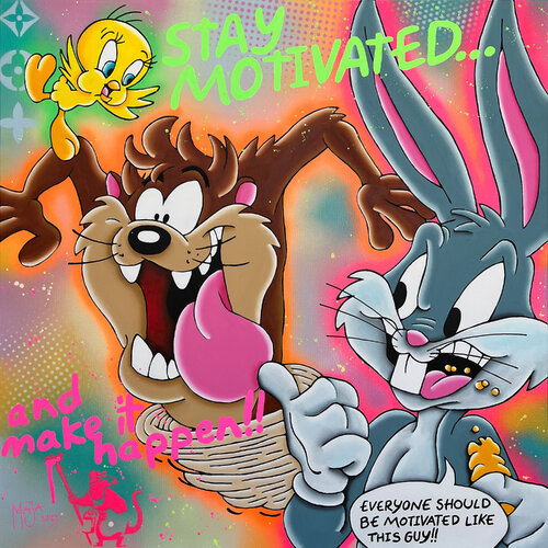 Stay motivated, and make it happen! Bugs Bunny, Taz & Tweety by Looney Tunes by Mario MAJA Stroitz (2023) : Painting Acrylic, Graffiti on Canvas - SINGULART