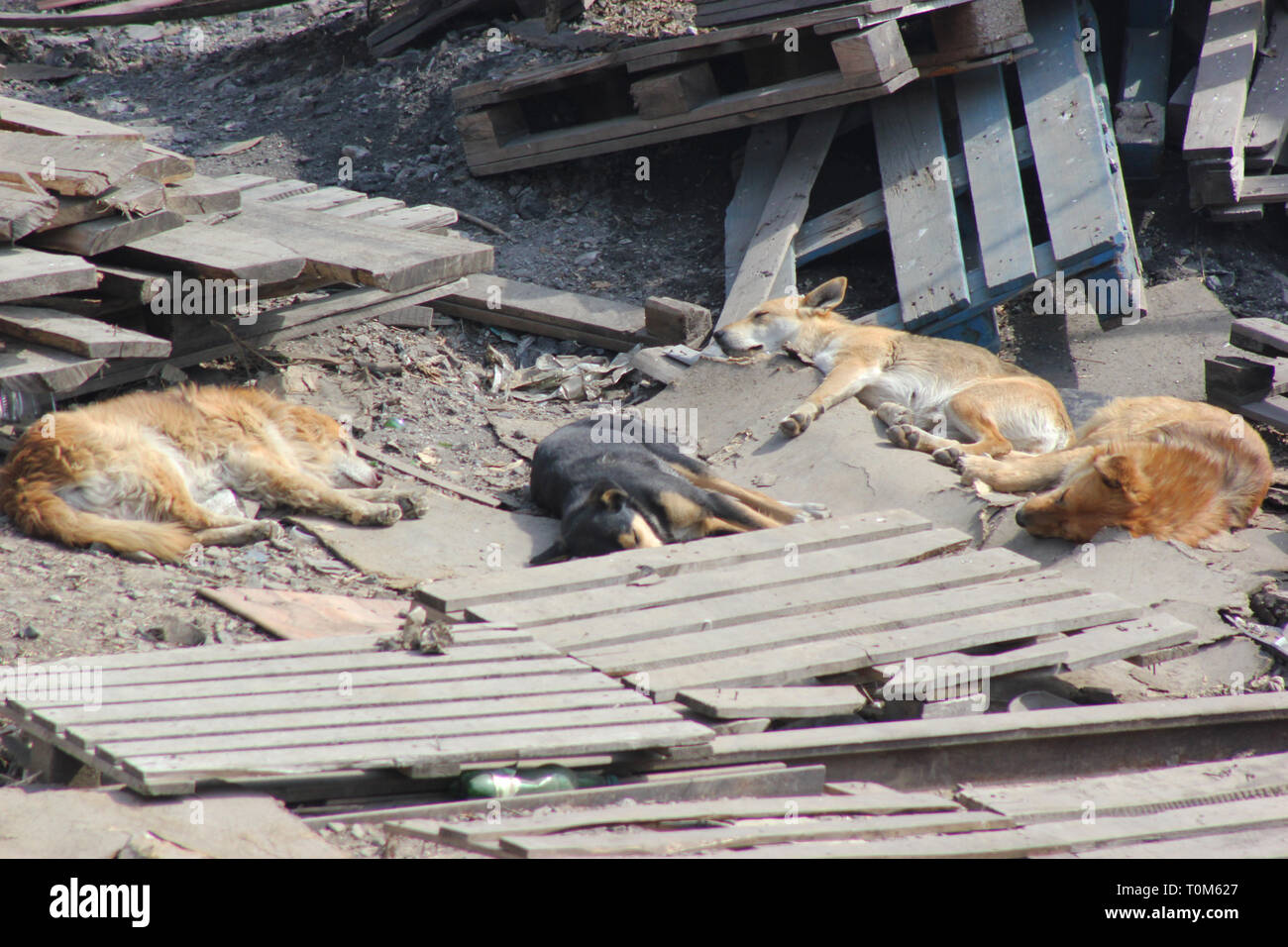 Los perros duermen en el suelo, en palets Fotografía de stock - Alamy