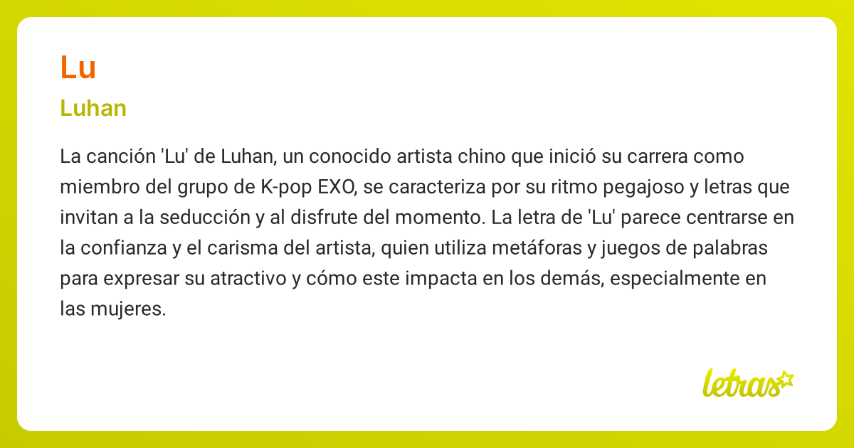 Significado de la canción LU (Luhan) - LETRAS.COM