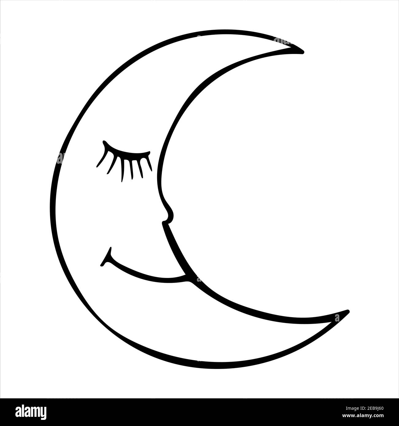 Luna creciente dormido, aislada simple dibujado a mano negro y blanco ilustración vectorial sobre fondo blanco Imagen Vector de stock - Alamy
