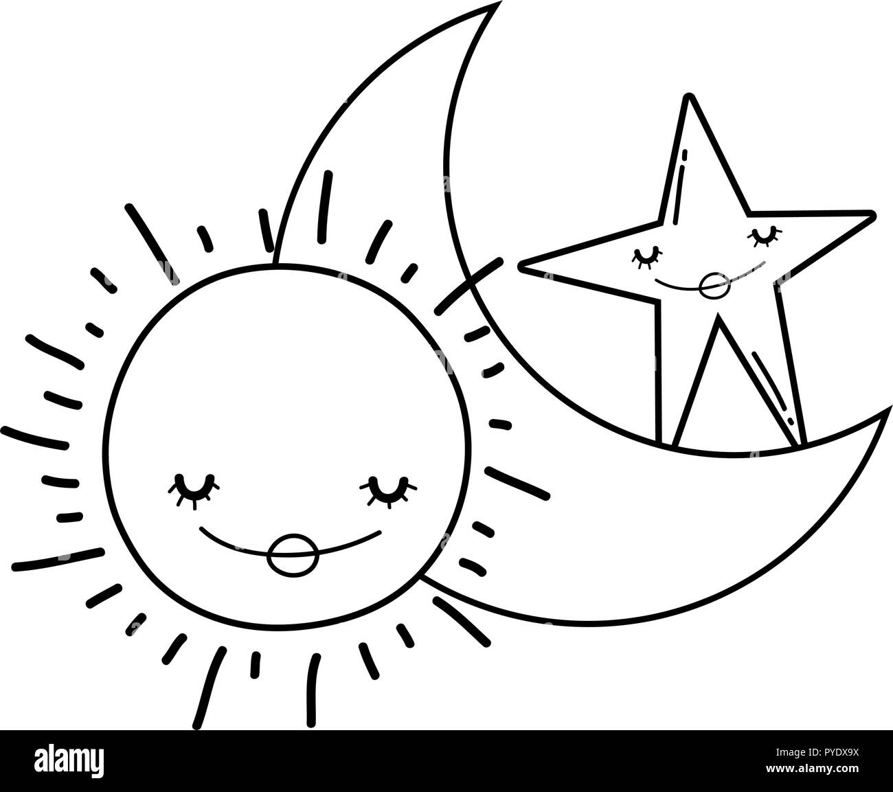 Luna y Sol caricaturas en blanco y negro Imagen Vector de stock - Alamy