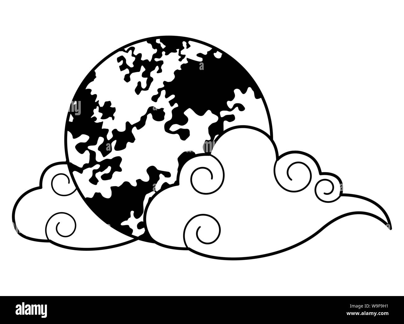 Nubes y luna caricatura en blanco y negro Imagen Vector de stock - Alamy