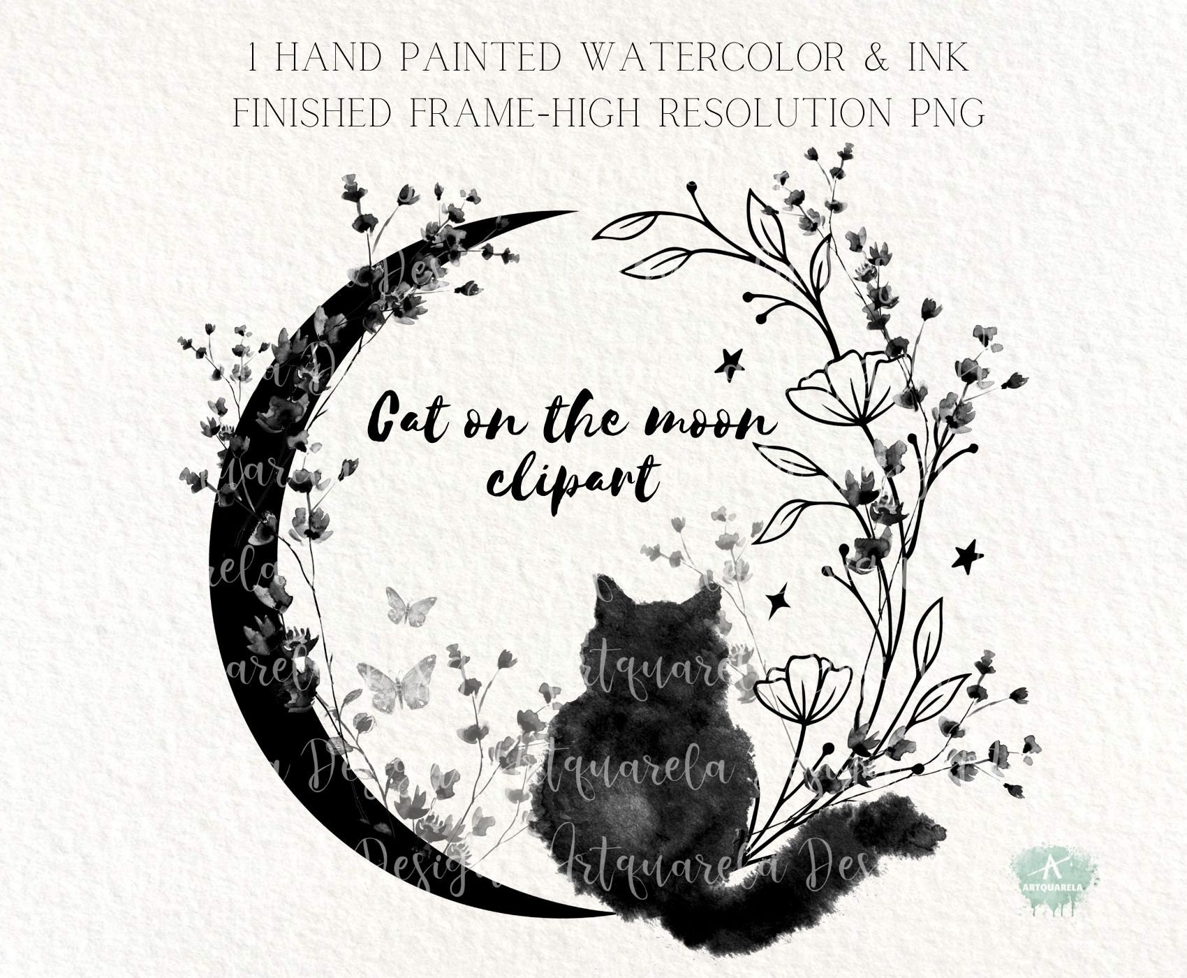 Gato en la luna Clipart PNG, Gato negro acuarela, Gato con flores, Imágenes prediseñadas de Halloween, Sublimación, Descarga instantánea Uso comercial - Etsy España
