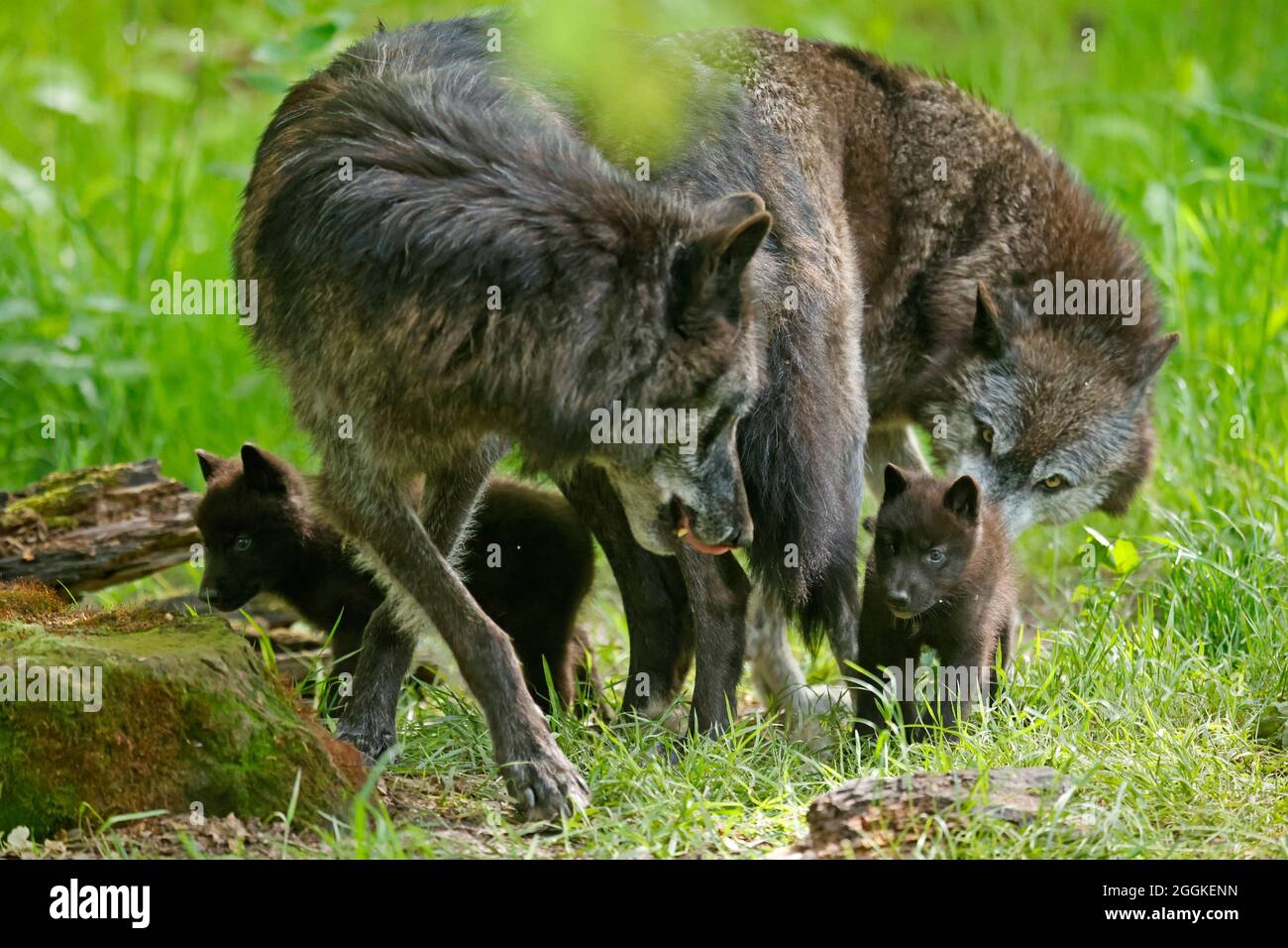 Lobos de madera en grupo familiar (paquete Fotografía de stock - Alamy