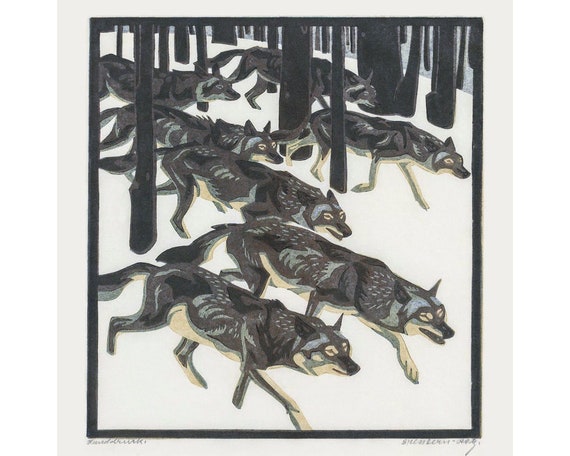 Manada de lobos impresión de arte, Pintura de lobo vintage, Arte de pared de animales, Vida silvestre, Linograbado, Invierno, Bosque, Bosque, Norbertine Bresslern-Roth - Etsy México