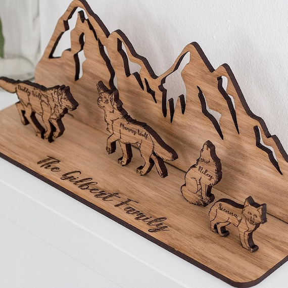 Regalo de Navidad de niños, Manada de lobos familiares, Signo de apellido de lobo de madera personalizado, Regalo personalizado para papá de la familia - Etsy México