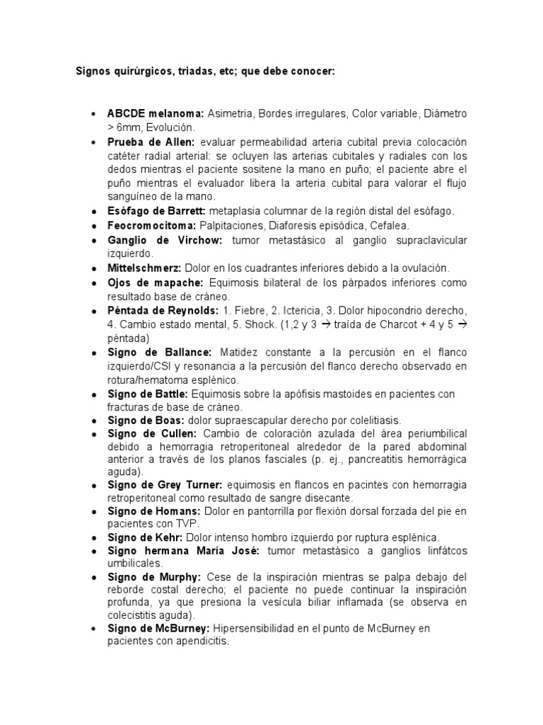 Signos Quirúrgicos Triadas Etc Que Debe Conocer | PDF | Especialidades Medicas | Medicina CLINICA
