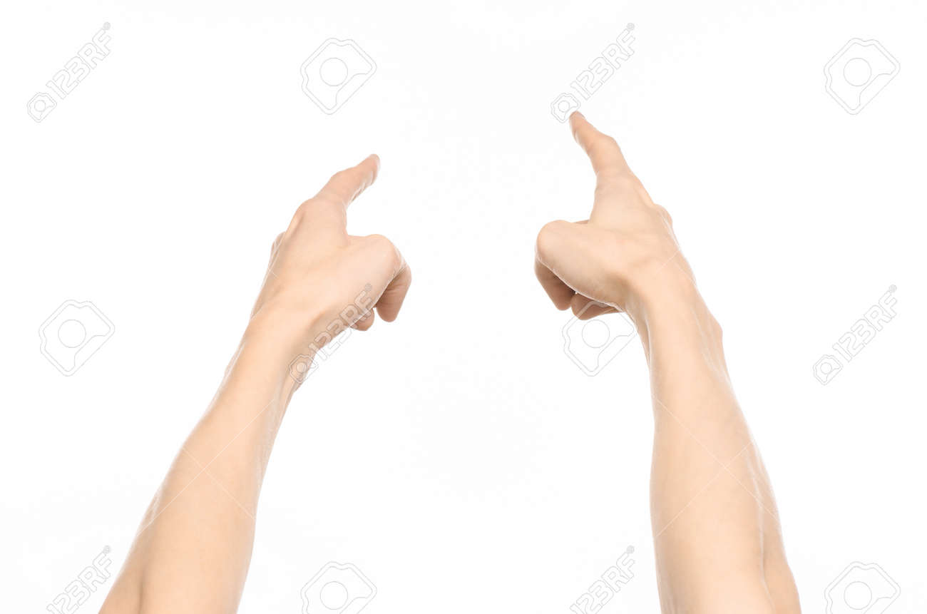 Gesticula Tema: Gestos De Mano Humanos Que Muestran La Visión De Primera Persona Aislada En El Fondo Blanco En Estudio Foto de archivo - Imagen de elasticidad, persona: 56439496