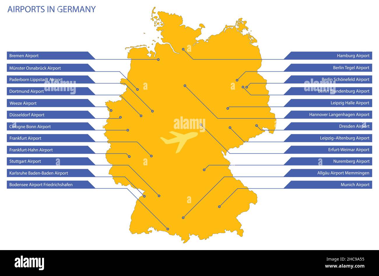 Mapa vectorial ilustrado de Alemania con los principales aeropuertos internacionales Imagen Vector de stock - Alamy