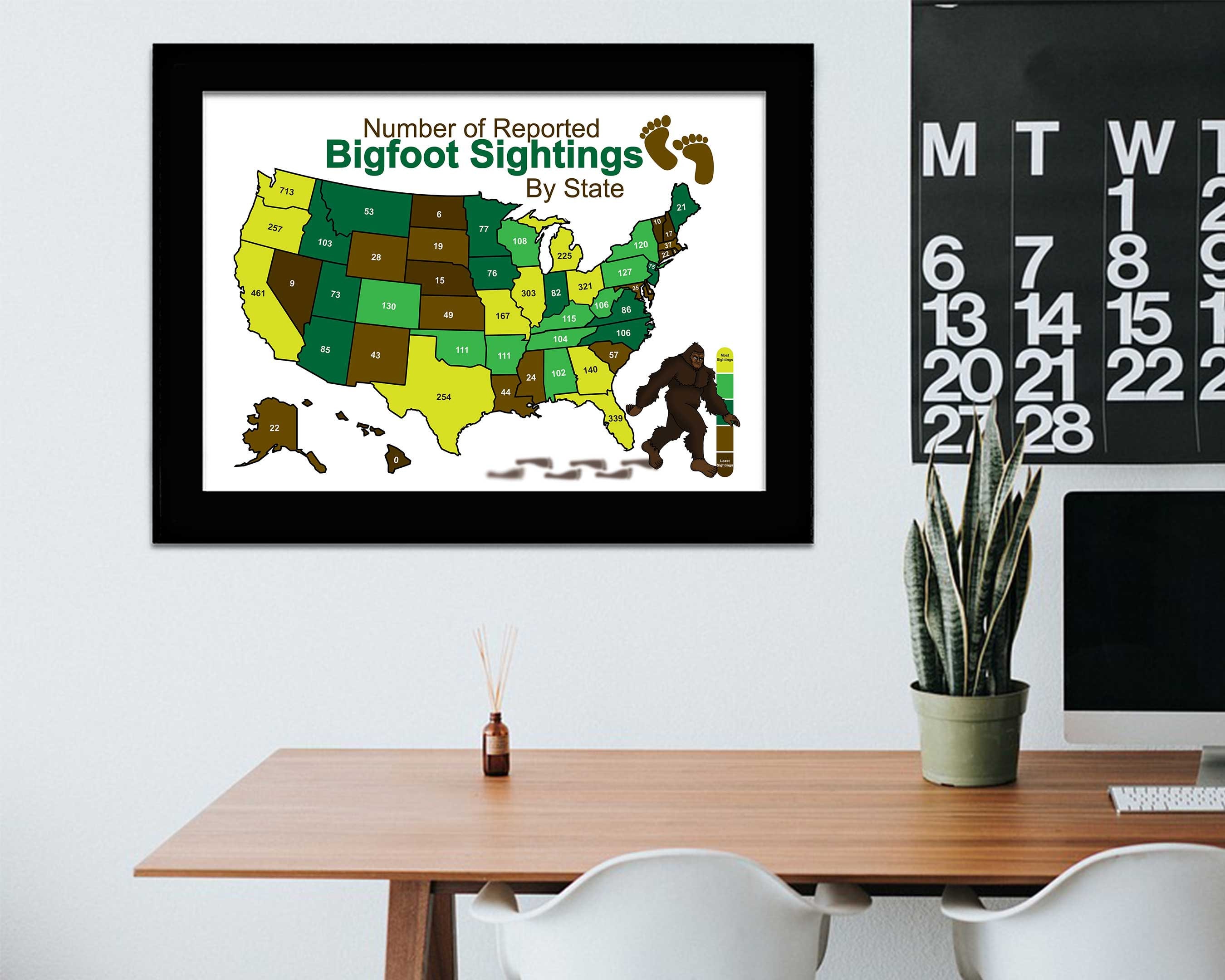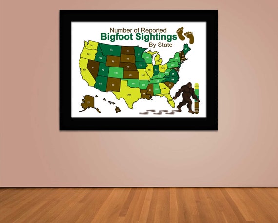 Bigfoot Sighting Map Sasquatch Art Print Estados Unidos Mapa Cryptid Cartel de Criptozoología Leyendas de América Mapa Paranormal Wall Art Regalos - Etsy España