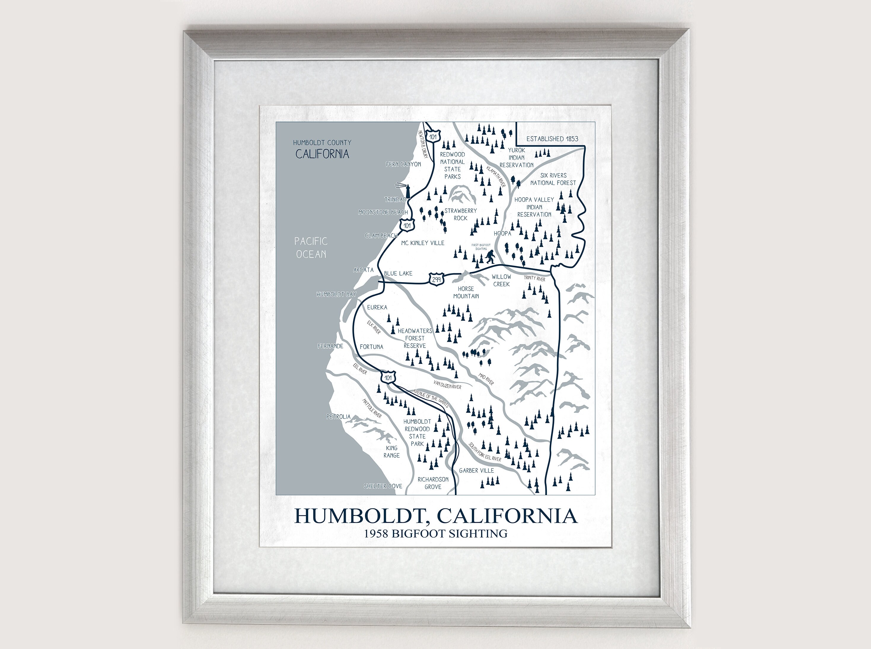 Mapa de Bigfoot del primer avistamiento reportado - Etsy España