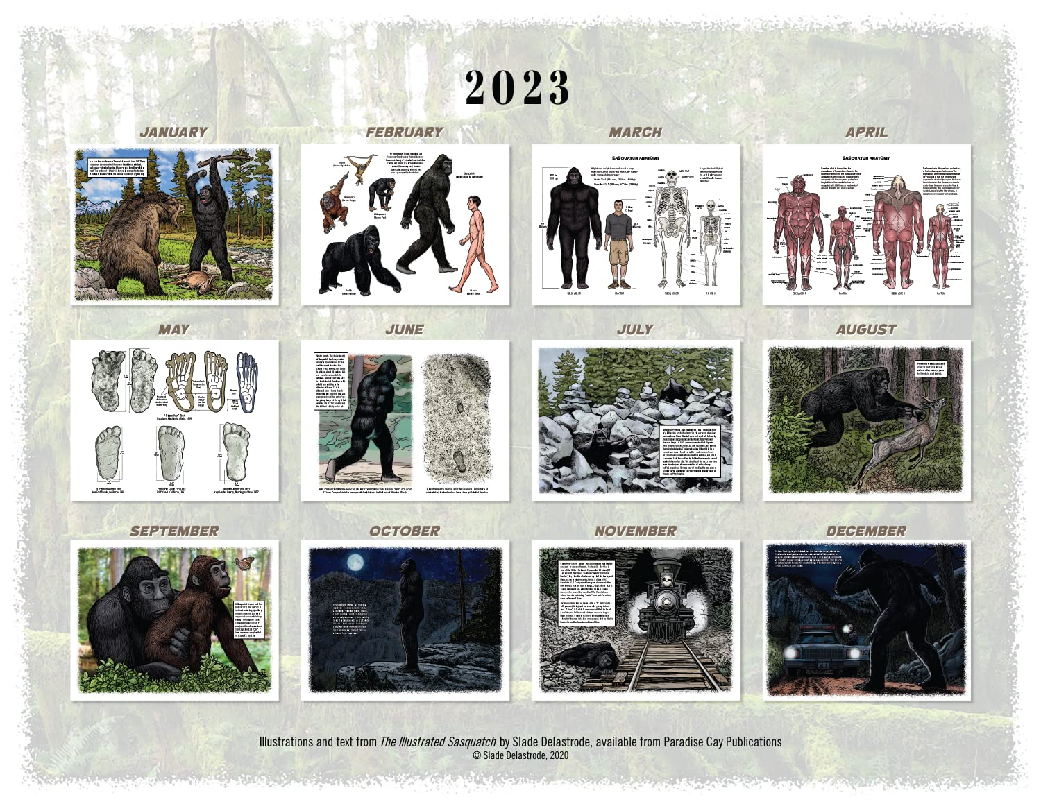 Amazon.com: Calendario BIGFOOT 2023 - Críptidos, Yeti, Sasquatch, monstruo paranormal regalo para oficina, cabaña, sala de estar, ideal para fanáticos del senderismo, campamento, críptidos, monstruos y lo desconocido
