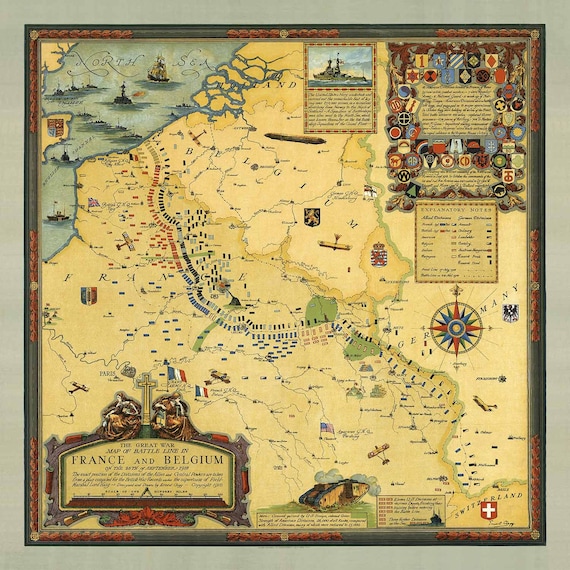 Mapa antiguo de la Gran Guerra, Primera Guerra Mundial Líneas de batalla de Inglaterra, Francia, Alemania y Bélgica Gráfico de Flandes Quinta batalla de Ypres Regalo enmarcado sin marco - Etsy España
