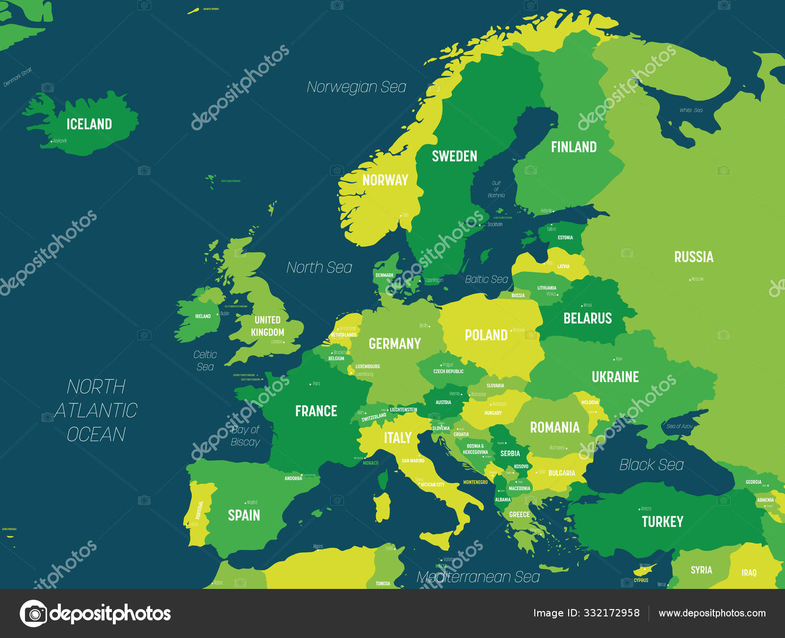 Mapa De Europa Mapa Político Detallado Del Continente Europeo Con Nombres De Países, Capitales, Océanos Y Mares Etiquetados Ilustración del Vector - Ilustración de detallado, etiquetado: 173169618