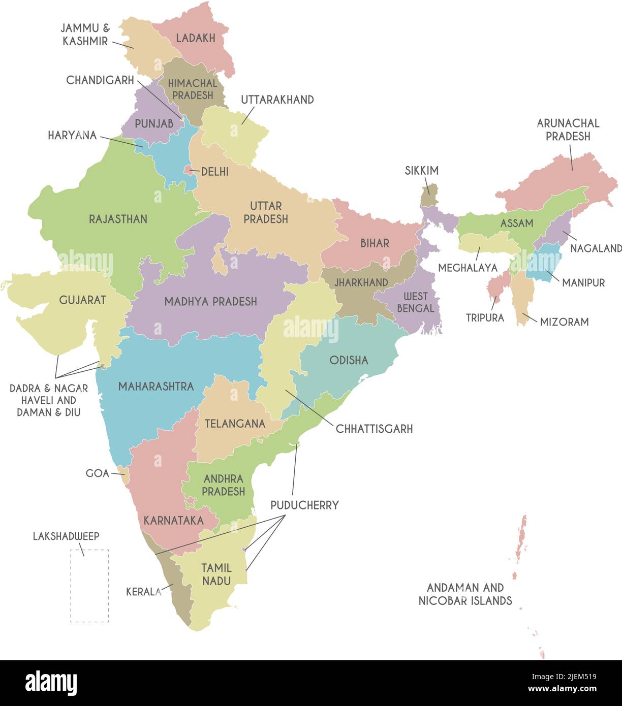 Mapa político de la india dividir por estado estilo colorido esquema simplicidad. 2853796 Vector en Vecteezy