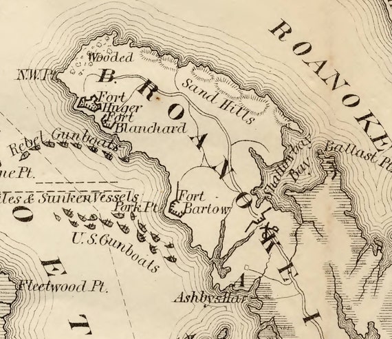 1862 Mapa de la isla de Roanoke, Carolina del Norte - Etsy México
