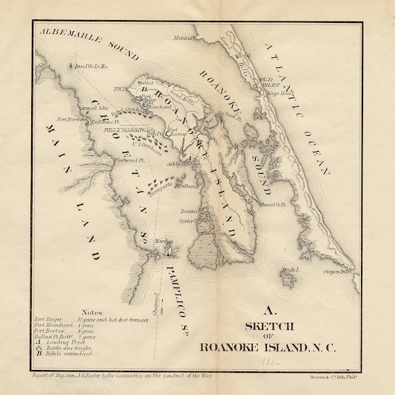 Amazon.com: 1866 Guerra Civil Mapa Roanoke Isla, Sketch de ...