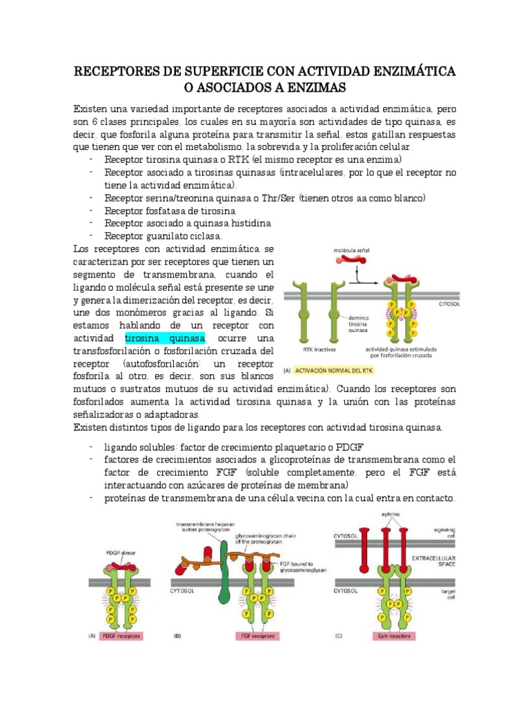 Receptores con actividad tirosina quinasa - Apuntes de Bioquímica | Docsity