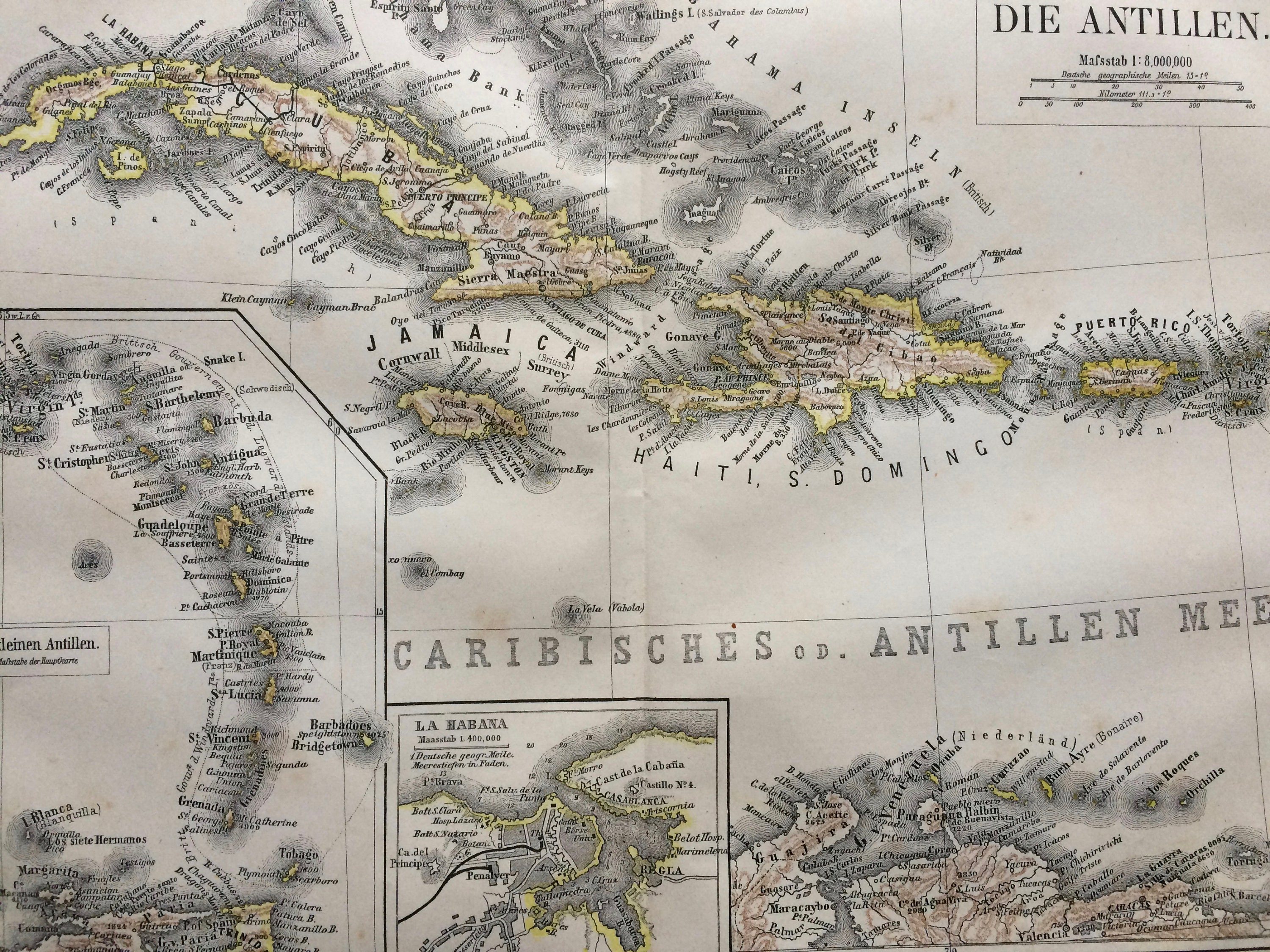 1877 Las Antillas Mapa Antiguo Original con mapas insertados de las Antillas Menores y La Habana Disponible enmarcado Mar Caribe Indias Occidentales - Etsy México