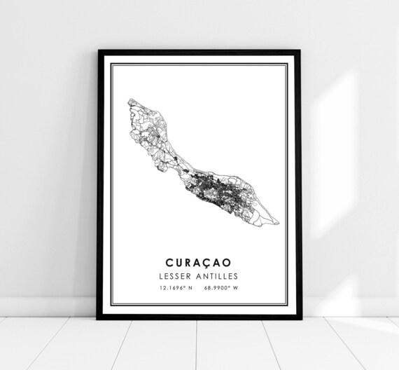 Mapa de Curazao imprimir póster lienzo / Mapa de las Antillas Menores imprimir póster lienzo / Mapa de la ciudad de Curazao imprimir póster lienzo - Etsy México