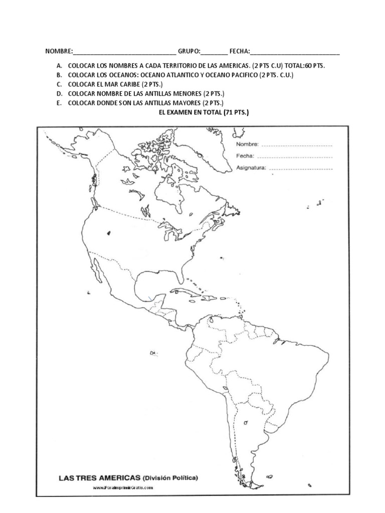 TEST PAÍSES DE AMÉRICA CONTINENTAL Y ANTILLAS MAYORES, Y SUS CAPITALES online exercise for | Live Worksheets