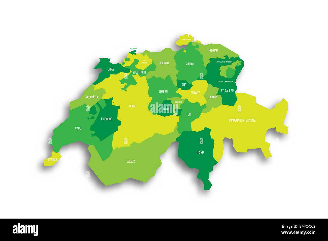 Colorido mapa político de Suiza. Divisiones administrativas - cantones. Mapa vectorial plano simple con etiquetas Imagen Vector de stock - Alamy