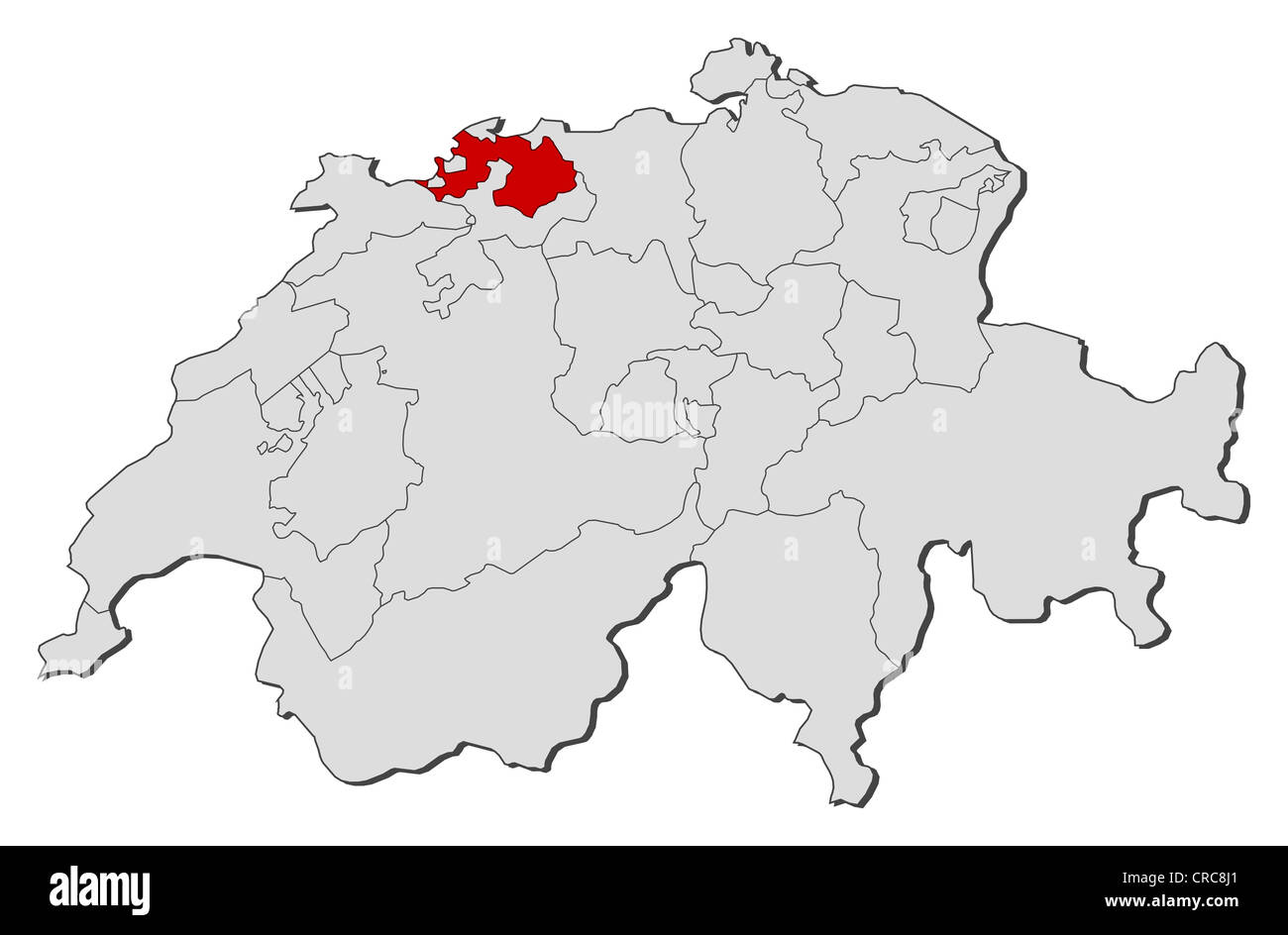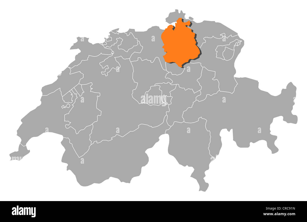Mapa político de Suiza con los varios cantones donde Zurich está resaltada Fotografía de stock - Alamy