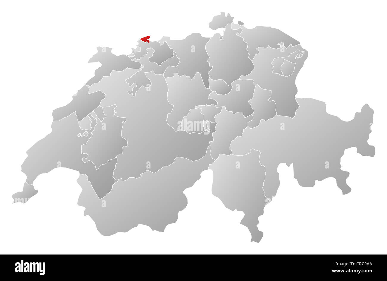 Mapa político de Suiza con todos los cantones donde Basilea - Paisaje está sacado el mapa Base generado utilizando los datos de mapa del Imagen Vector de stock - Alamy