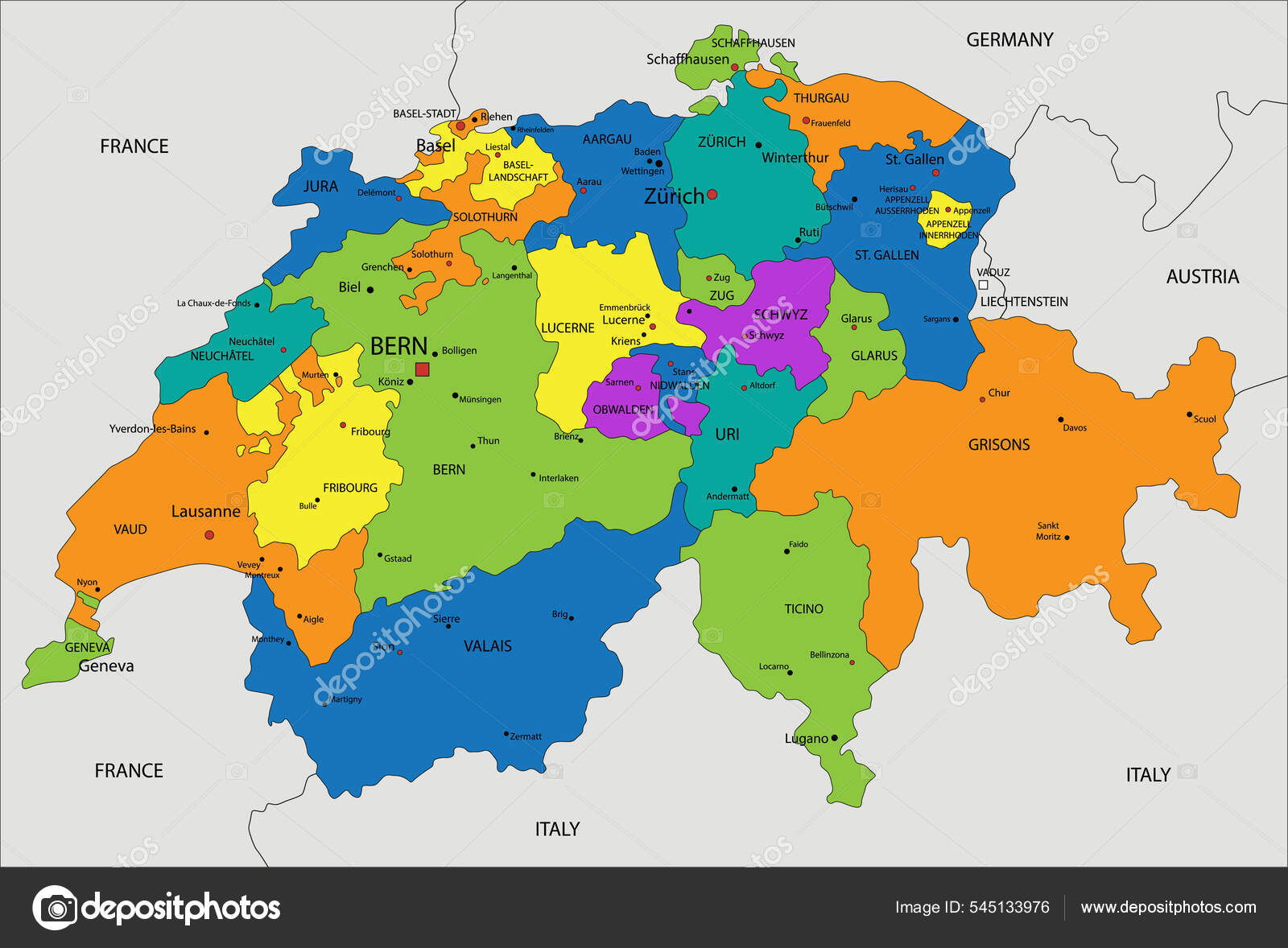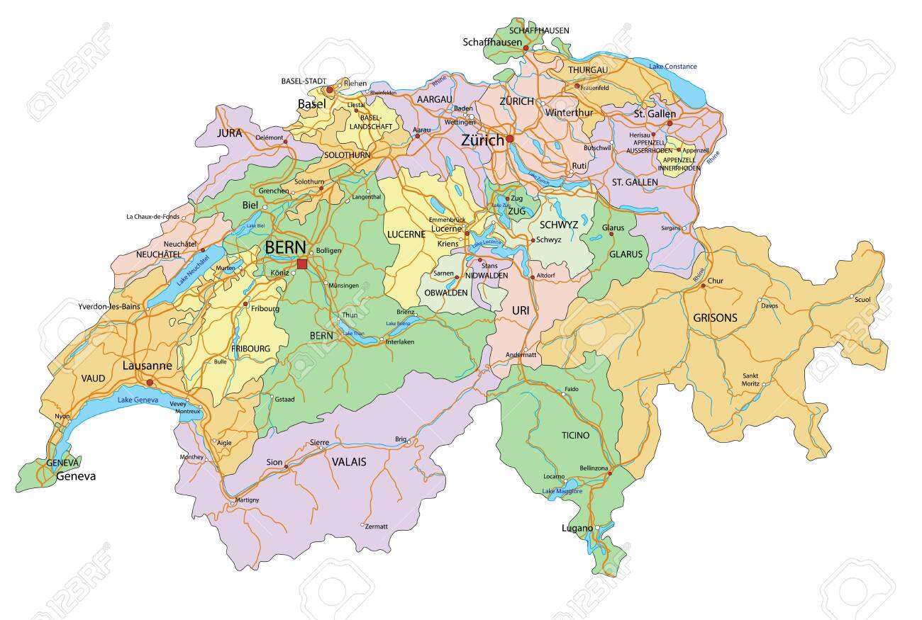 Mapa Político De Suiza Ilustraciones svg, vectoriales, clip art vectorizado libre de derechos. Image 47048061