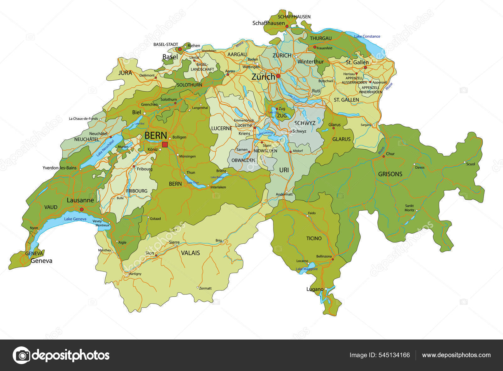 Mapa físico detallado del vector Suiza,: vector de stock (libre de regalías) 2152907603 | Shutterstock