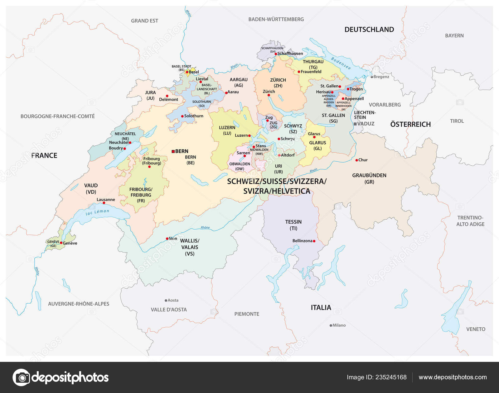 Mapa Político De Divisiones Administrativas De Suiza Ilustración del Vector - Ilustración de unidad, atlas: 269386447