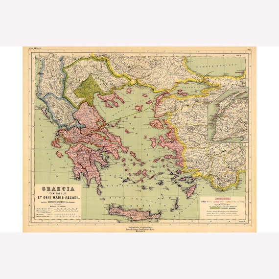 Grecia y el Mar Egeo Troas y Tracia Mapa histórico de Kiepert, 1900 Marco magnético de madera de teca opcional - Etsy España