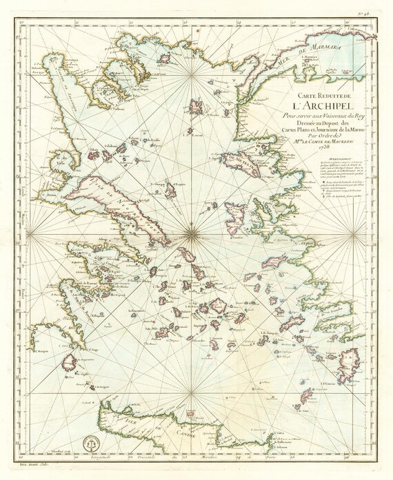 Mapa antiguo del mar Egeo, 1753, reproducción fina, mapa grande, impresión artística, impresión de mapa de gran tamaño - Etsy España
