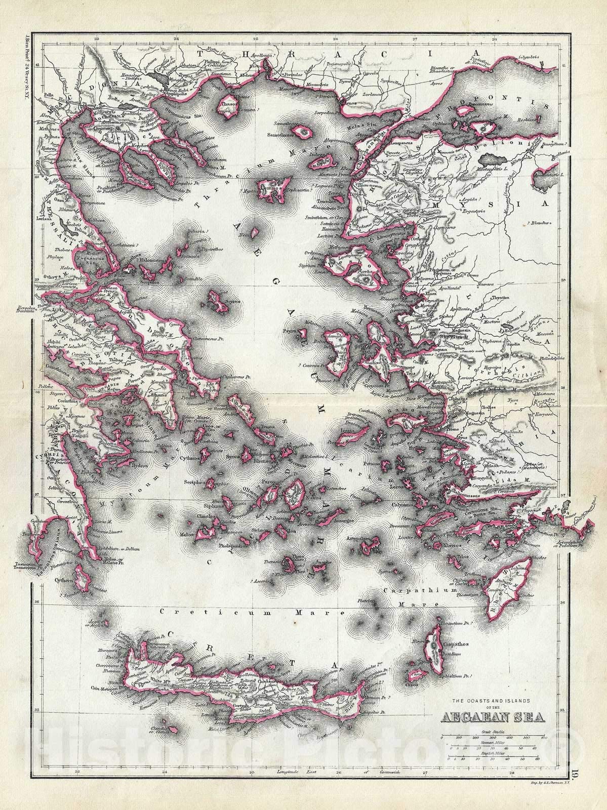 Amazon.com: Mapa histórico: Las islas del mar Egeo o el archipiélago griego, Hughes, 1867, Vintage Wall D?or : 33in x 44in : Hogar y Cocina