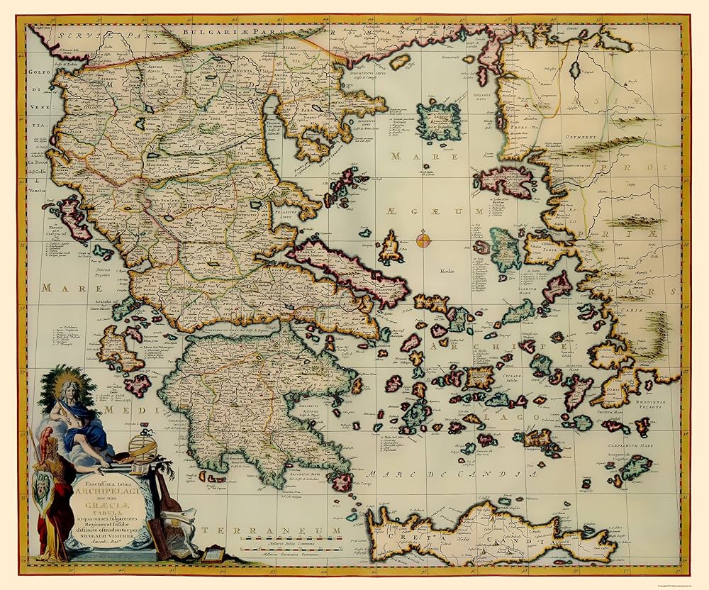 Amazon.com: Old Mapa de Grecia – Grecia Mar Egeo y creta – Visscher 1681 – 23 x 27,66: Libros