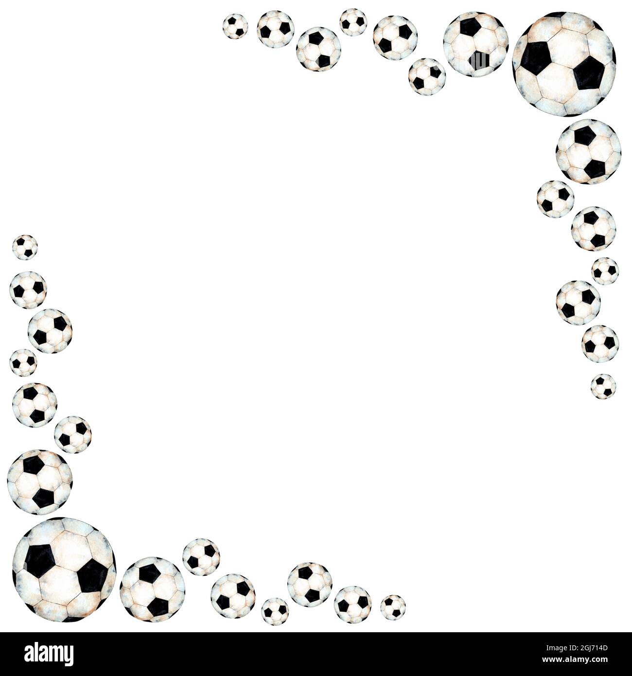 Marco deportivo de fútbol acuarela decorado con pelota. Marco de esquina. Equipo deportivo, bola blanca y negra. Aislado sobre fondo blanco. Dibujado a mano Fotografía de stock - Alamy