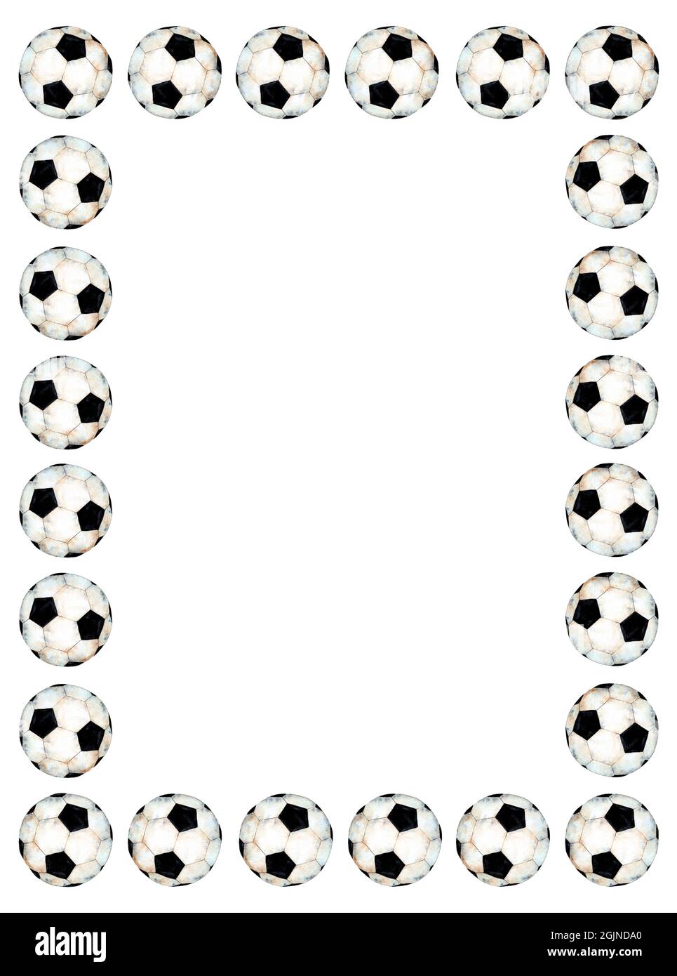 Ilustración acuarela de un marco deportivo de fútbol decorado con una pelota. Marco rectangular. Equipo deportivo, bola blanca y negra. Aislado sobre blanco Fotografía de stock - Alamy