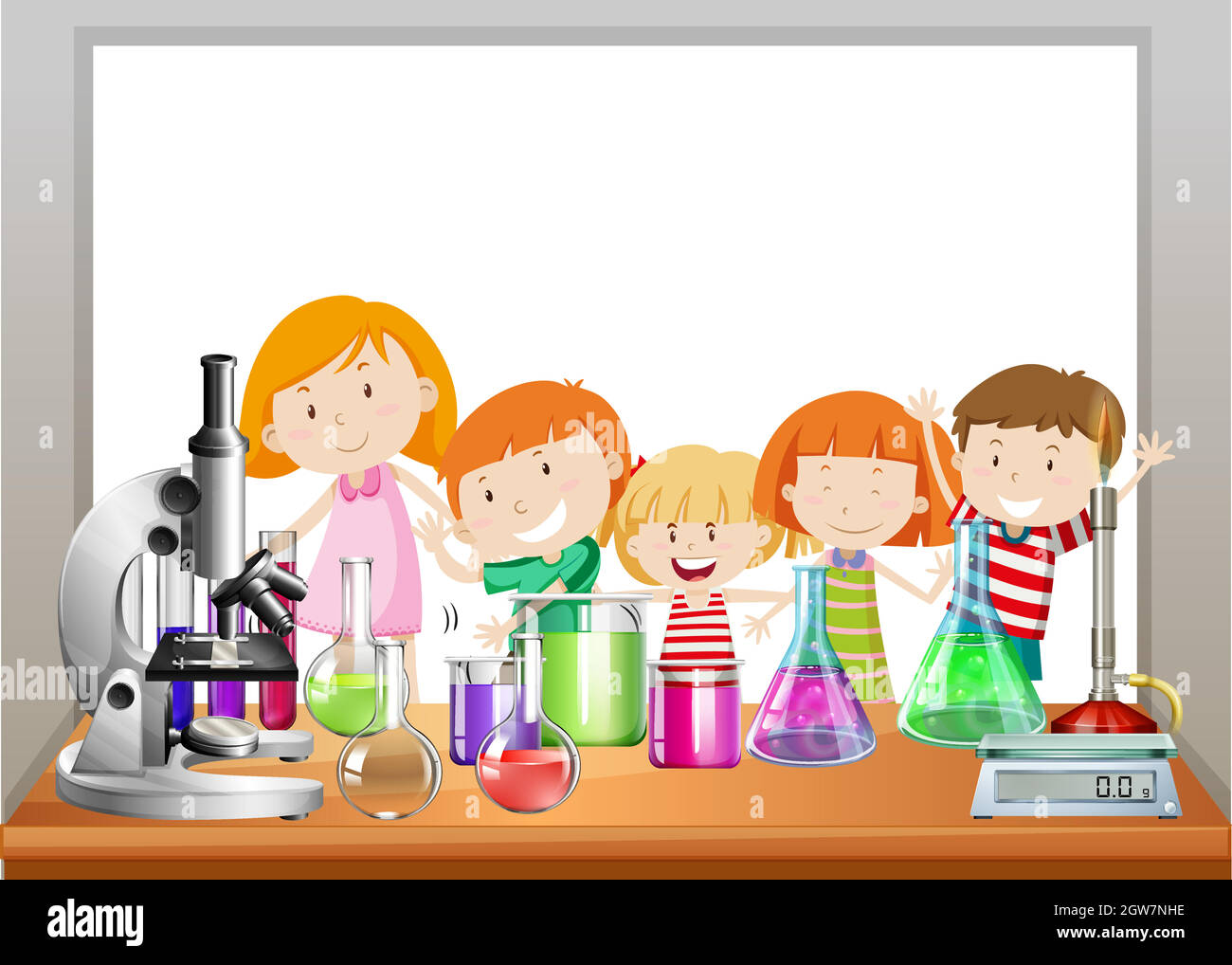 Diseño de plantilla de marco con niño en laboratorio de ciencias | Vector Gratis