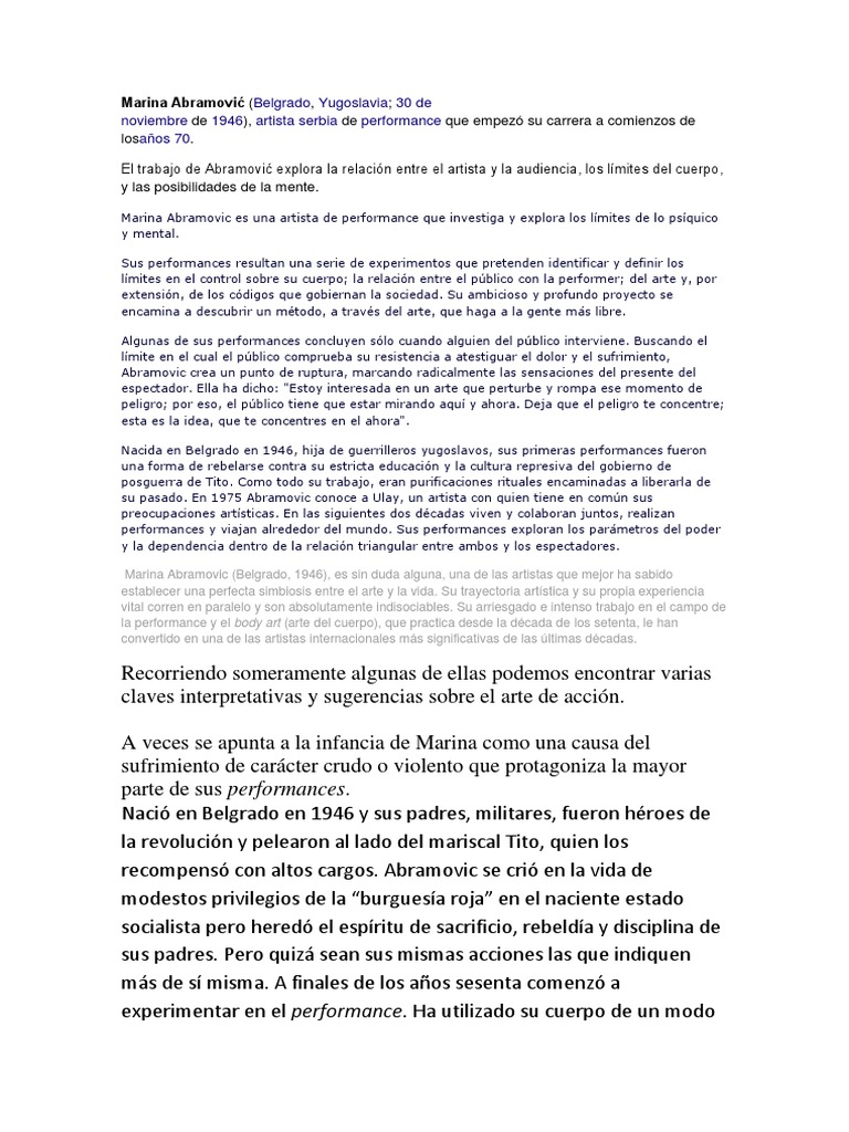 Marina Abramović | PDF | Arte de performance | Movimientos de arte