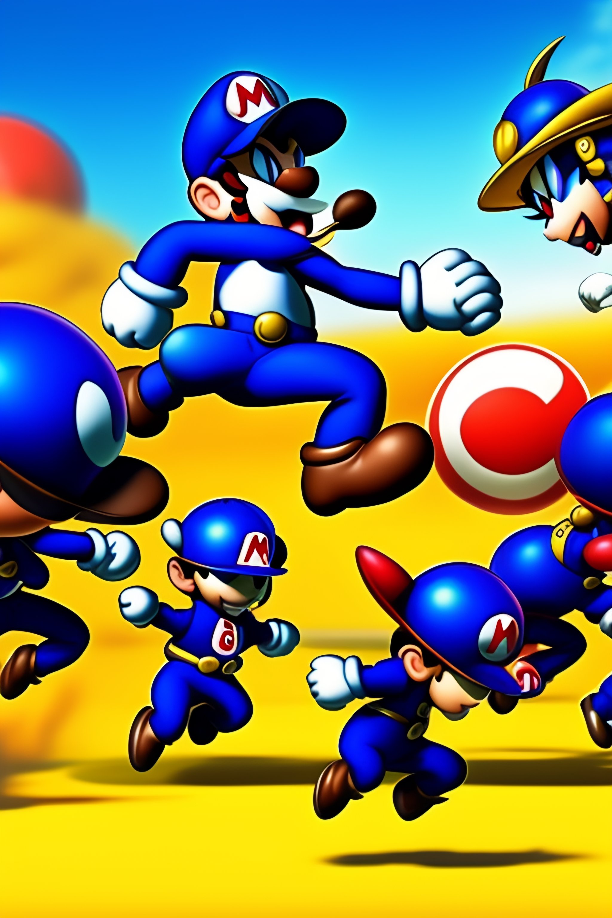 Lexica - Greninja kicking mario into the air while multiple Greninja clones surround Mario