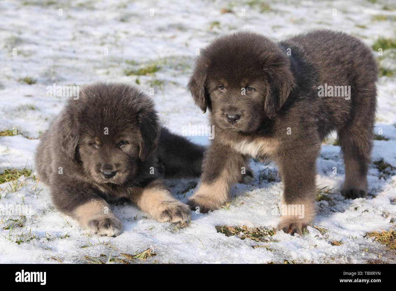 Amazing puppies of Tibetan mastiff sitting in winter Stock Photo - Alamy
