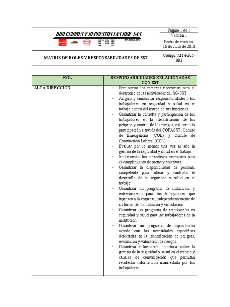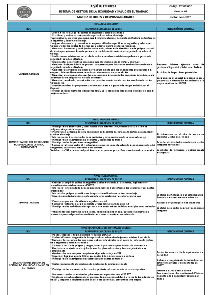 Matriz de roles y responsabilidades en el sg-sst by Yerlis Muñoz - Issuu