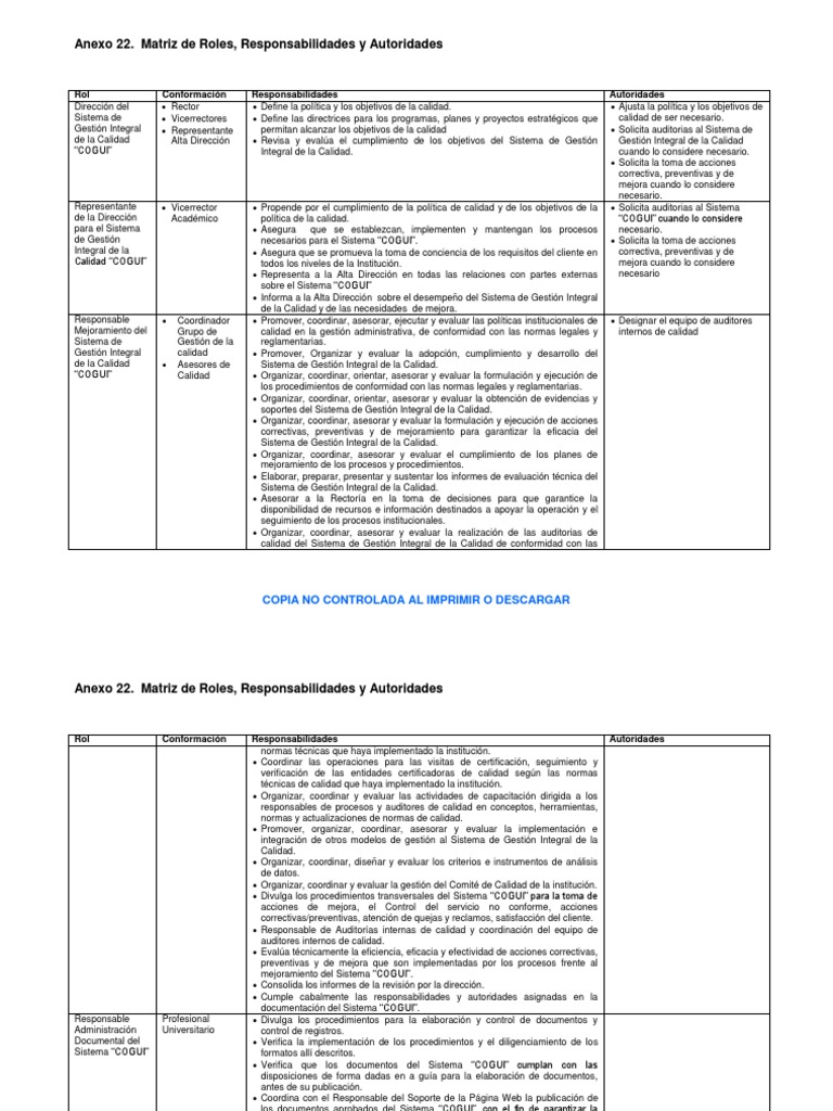 Anexo 22 Matriz de Roles, Responsabilidades y Autoridades - Rol Conformación Responsabilidades - Studocu