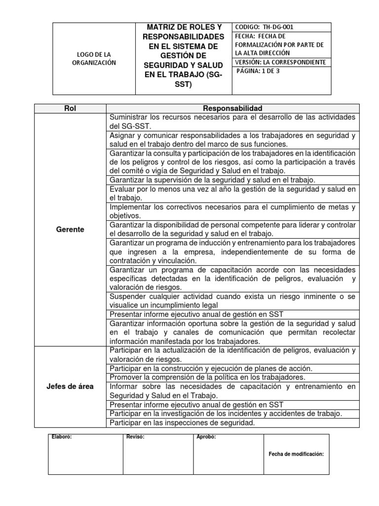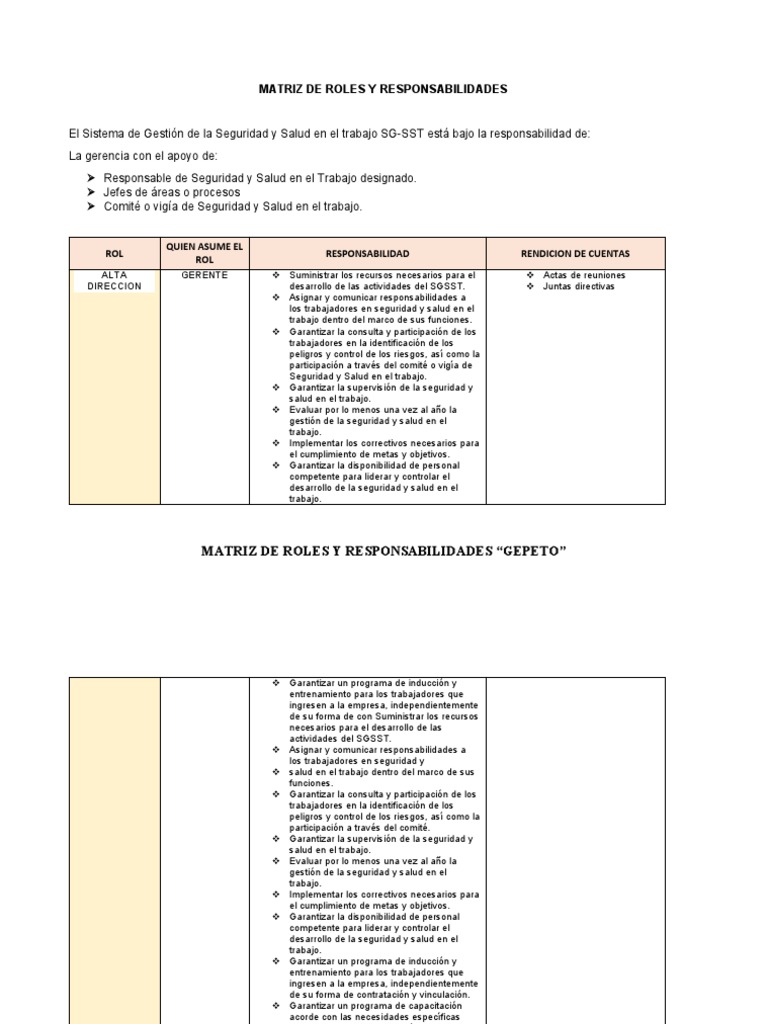 DOC) Matriz de Roles, Responsabilidades y Perfil de Cargos en Seguridad y Salud Ocupacional Nivel Central | james soriano panduro - Academia.edu