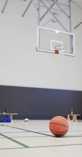 Escuela de dibujos animados gimnasio de baloncesto cancha de deportes cubierta gimnasio universitario vacío con equipo | Vector Premium