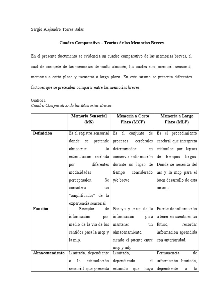 Cuadro Comparativo de Las Memorias Breves - Sergio Alejandro Torres Salas | PDF | Memoria | Neuropsicología