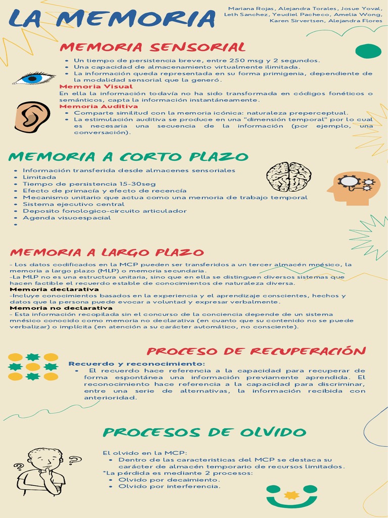 LA Memoria Infografía - LA MEMORIA ¿QUÉ ES? Es la capacidad para recordar, es un proceso cerebral en - Studocu