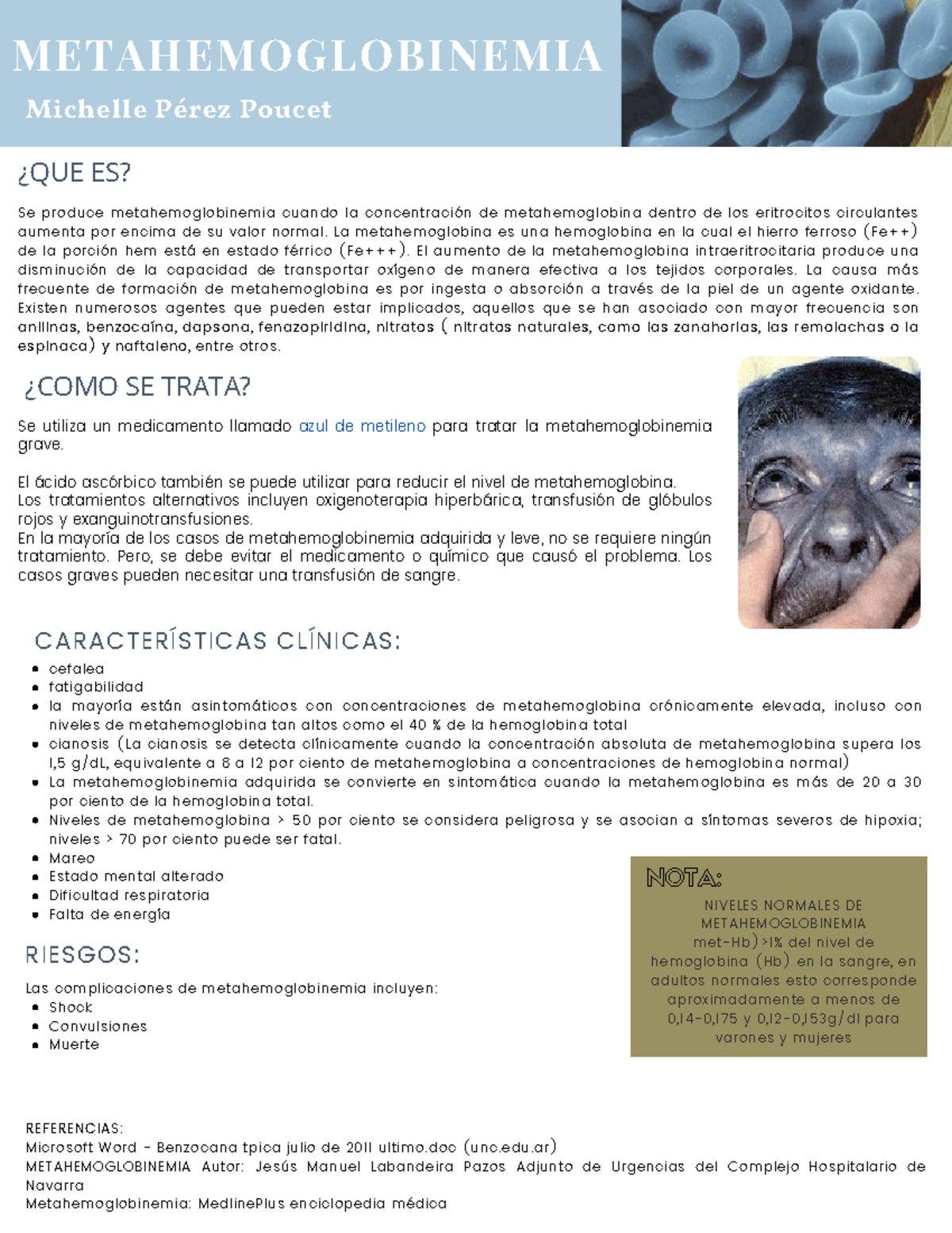 Metahemoglobinemia ensayo generalidades - METAHEMOGLOBINEMIA Se produce metahemoglobinemia cuando la - Studocu