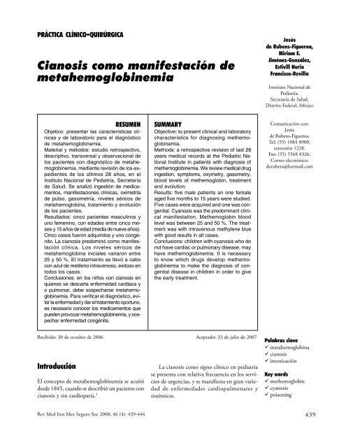 PDF) Metahemoglobinemia, una entidad de diagnóstico complejo. Reporte de un caso