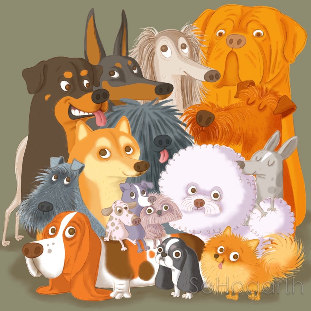 Mezcla de perros. Doberman Shiba Inu Toy Spaniel Pomerania Terrier irlandés Kerry Blue Basset Hound Bichon Frise Saluki Puli. Papel mate 8x11 Imprimir - Etsy España